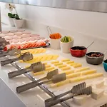 Οι πελάτες μπορούν να απολαύσουν καθημερινά πρωϊνό σε μπουφέ. Οι πελάτες μπορούν να δοκιμάσουν πιάτα Griekse στο εστιατόριο Adrina Grand με θέα στη θάλασσα.